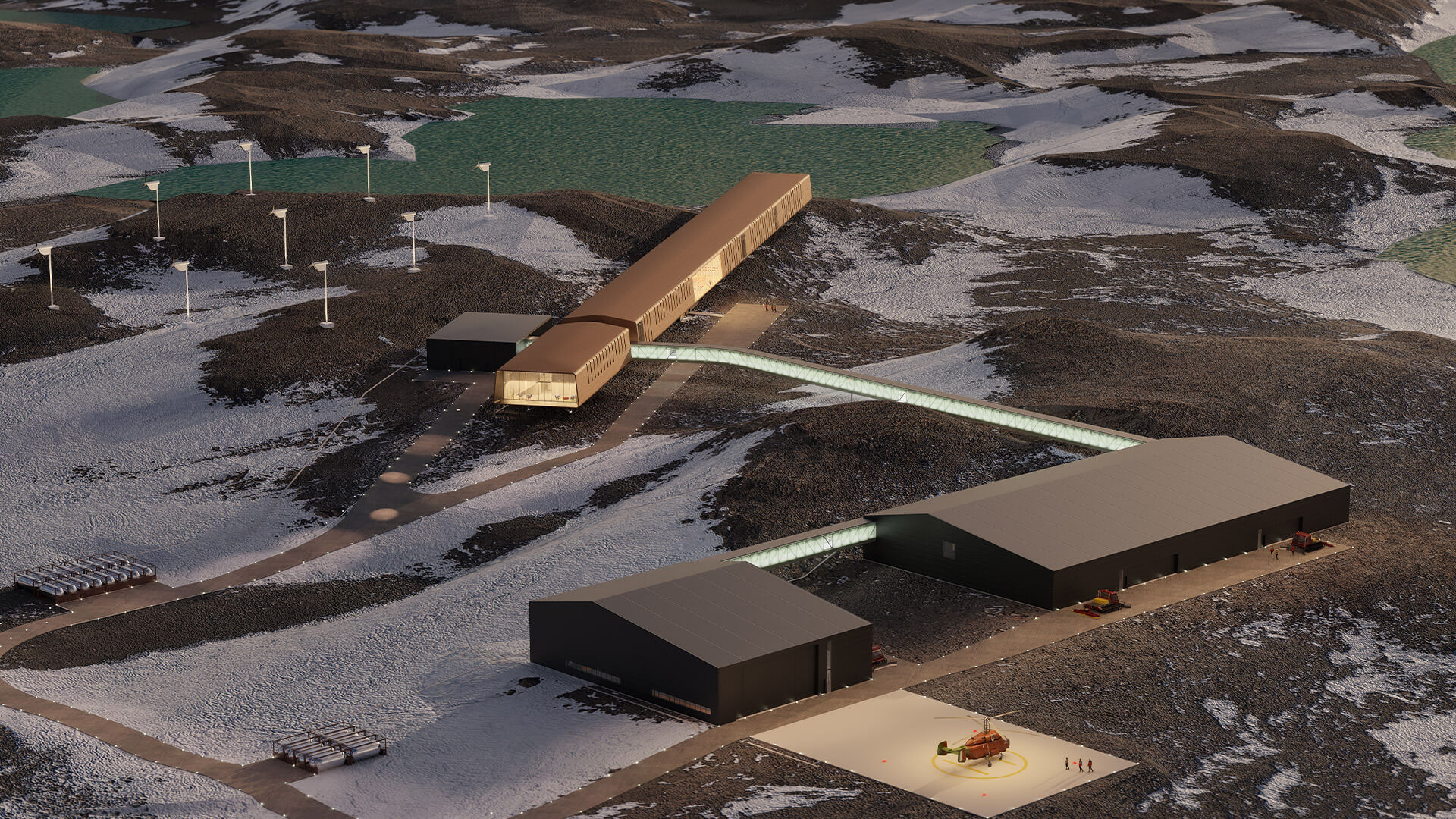 Projeto finalista do concurso internacional para a proposta arquitetônica da nova Estação Antártica de Pesquisa NCPOR Maitri II. Área total projetada: 14.769 m²